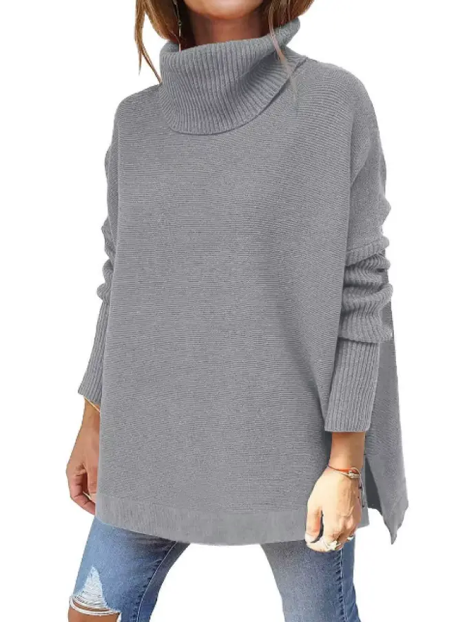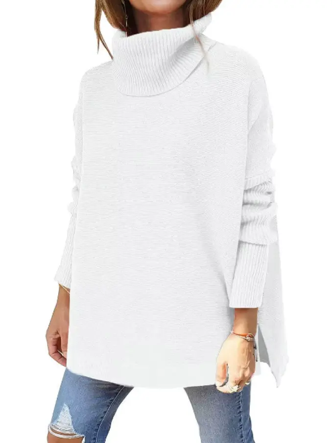 Women's Casual Oversize Knitted Rib Turtleneck Sweater