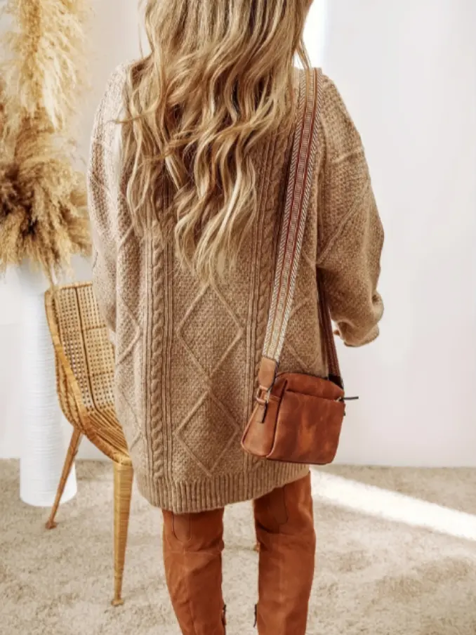 Winter Long Sweater Skirts Women'S Ribbed Long Sleeve Dress Loose Knee-Length Skirt Women'S Knit Sweater