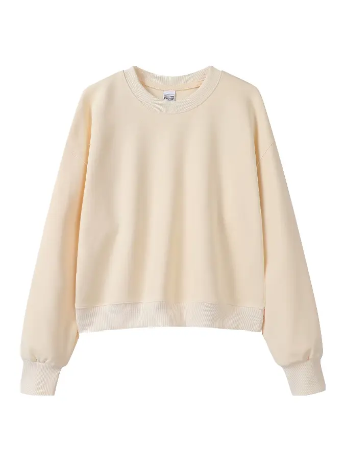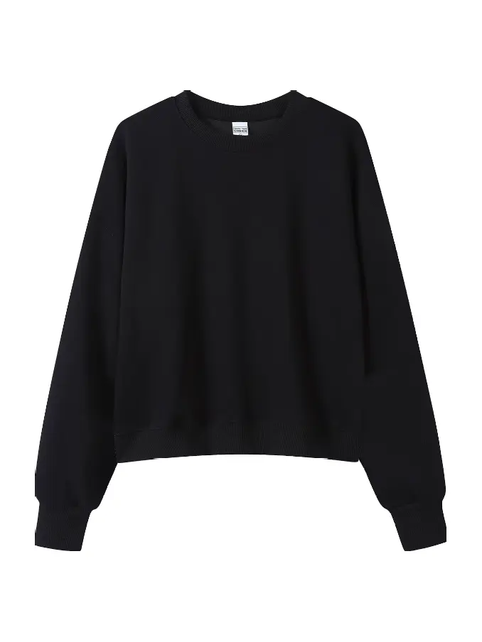 Women's Autumn Oversized Short-Sleeve 100% Cotton Crewneck Sweatshirt Simple Pullover Design for a Flattering Silhouette