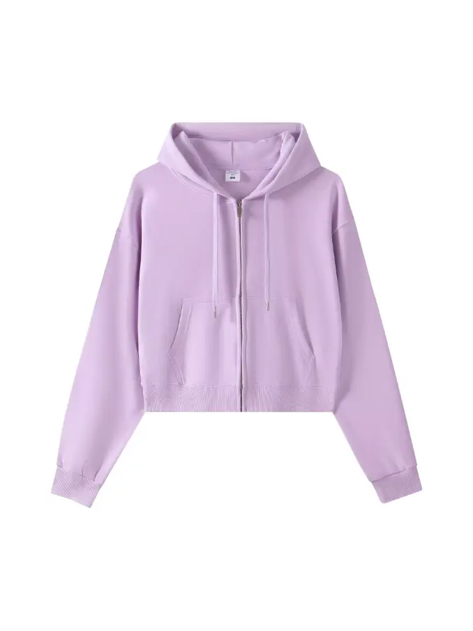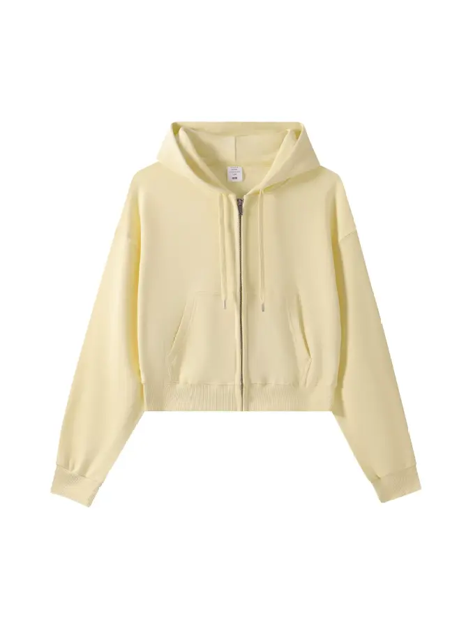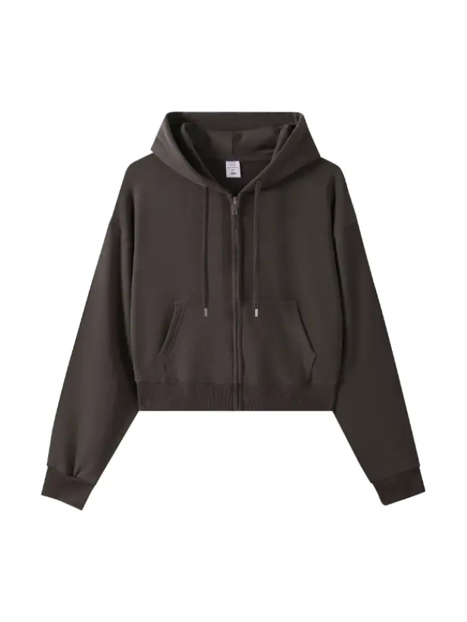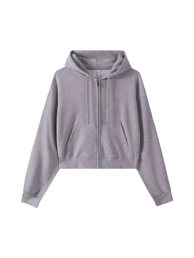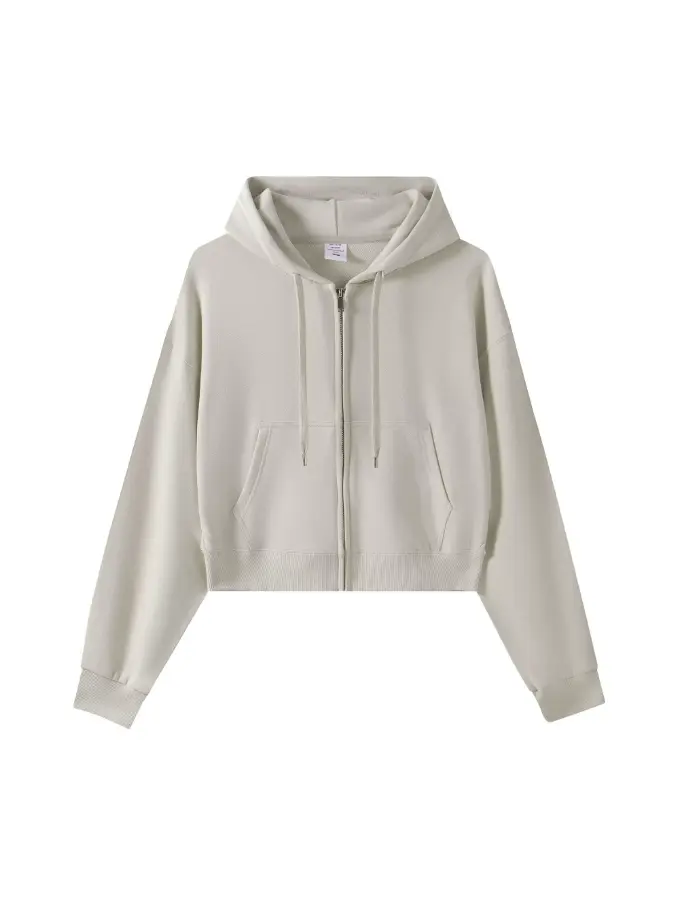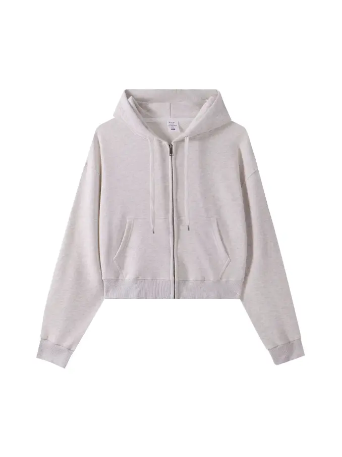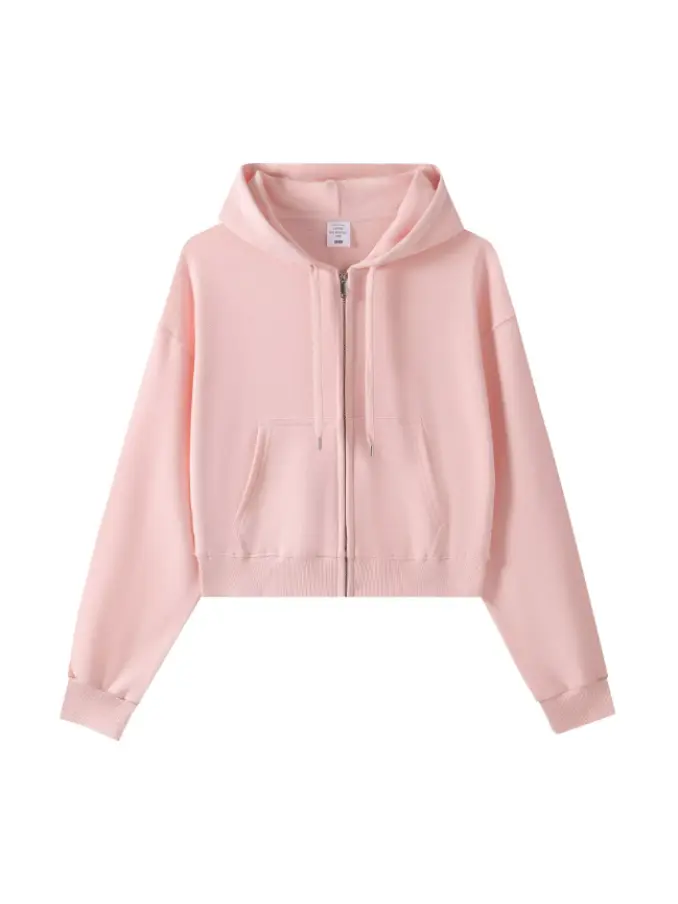 Short-Sleeve Zipper Hoodie for Women Autumn Oversized Simple and Versatile Sweatshirt Top