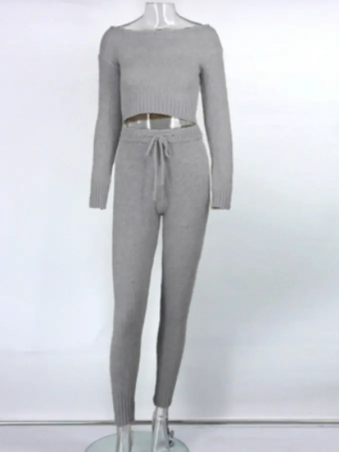 Women's Casual Long-sleeved Cropped Short Top and Trousers Two-piece Suit for Women