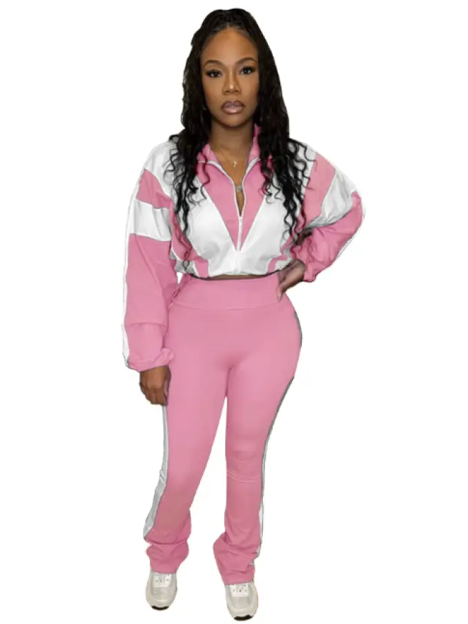 Two Pieces Sweat Suit With Long Sleeve Cardigan Crop Top Sweatshirt and High Waist Tight Pants