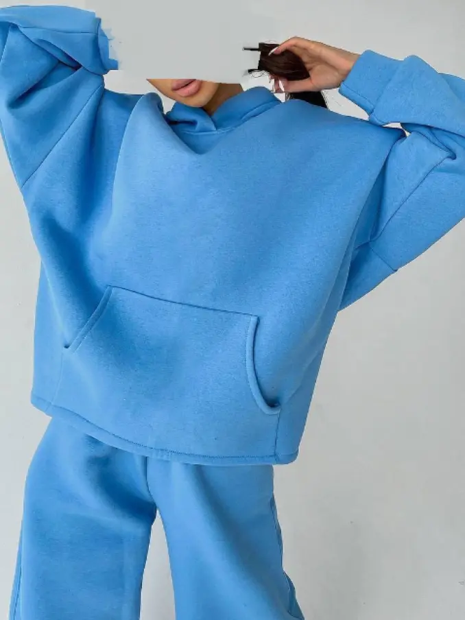 Tracksuit Women Elegant Solid Suits Fleece Warm Hoodies 2 Piece Set Autumn Winter Fashion Oversized Sweatshirts Tracksuit