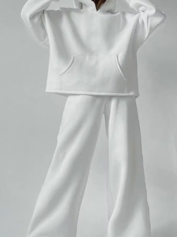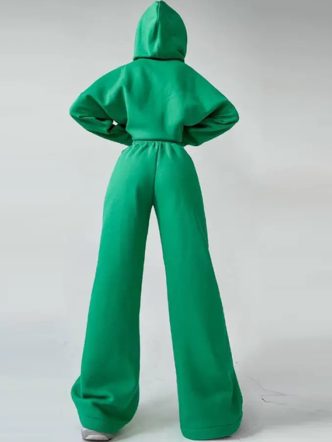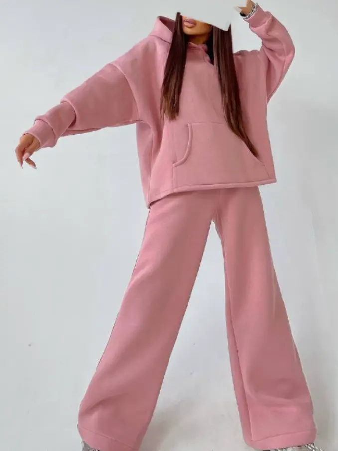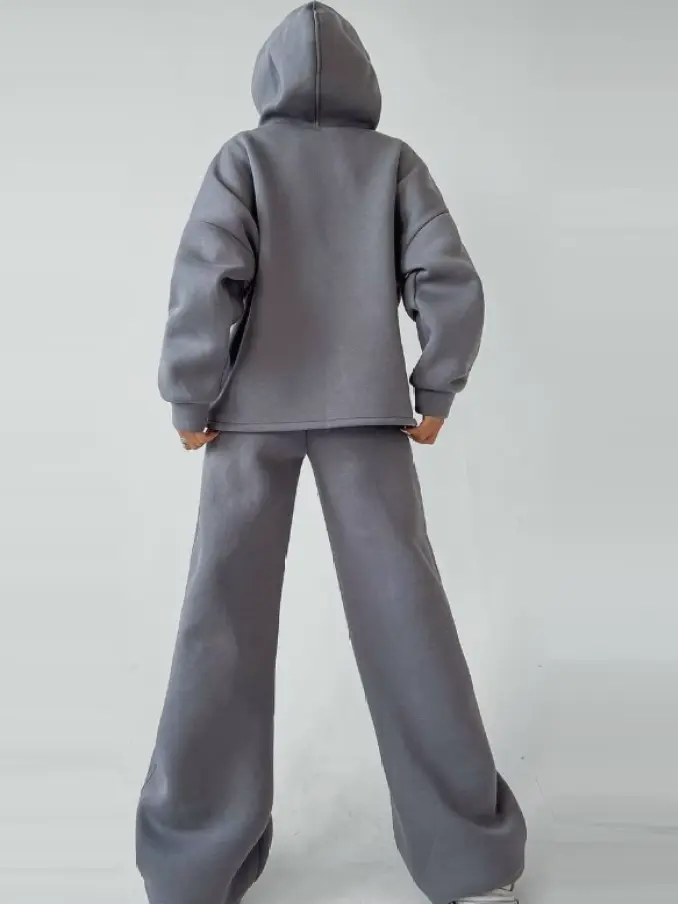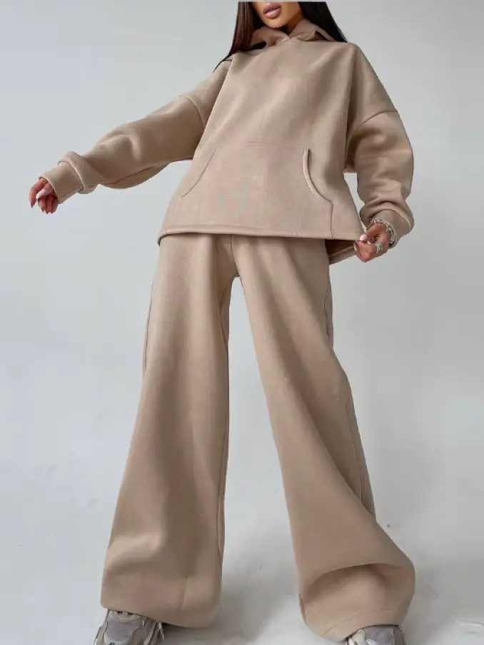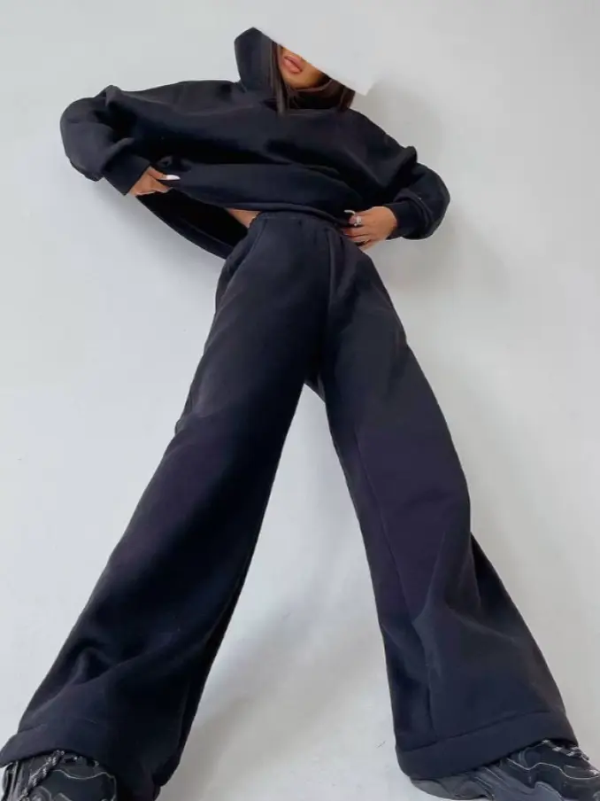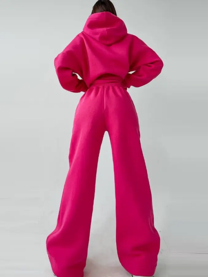 Women Elegant Suits Fleece Warm Hoodies 2 Piece Set