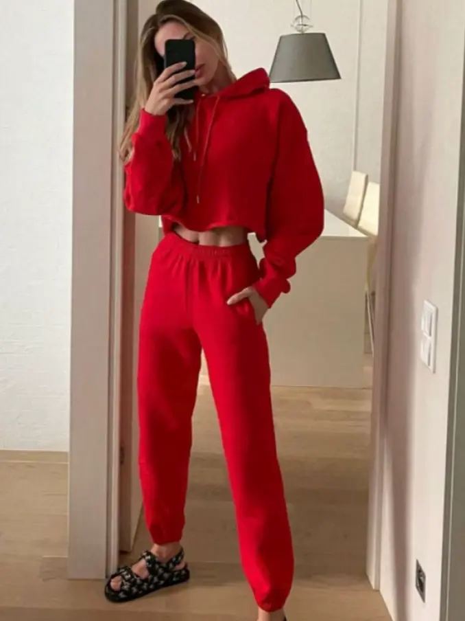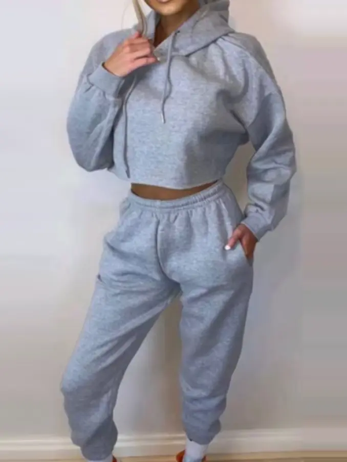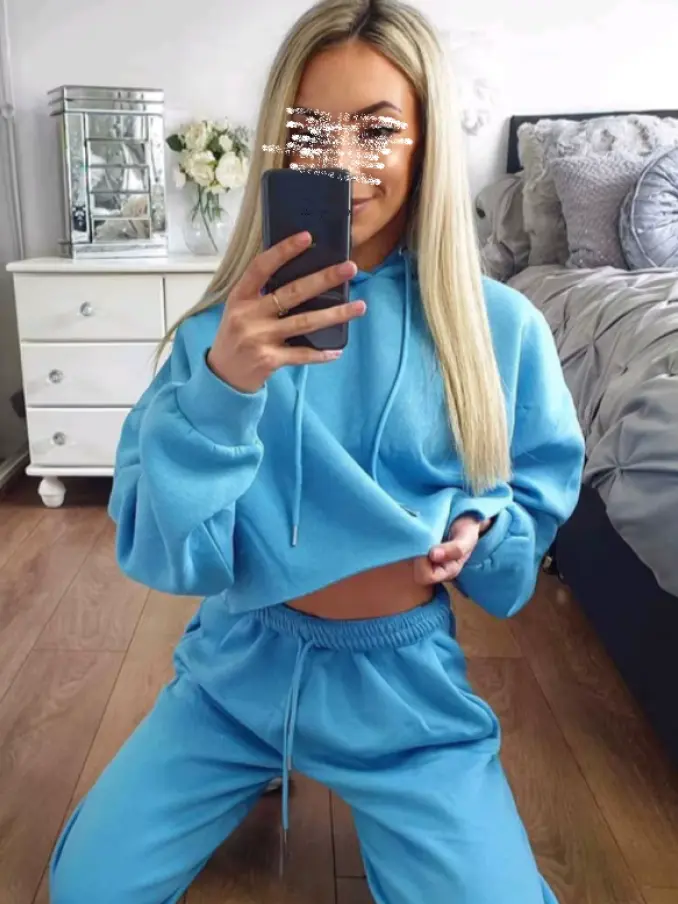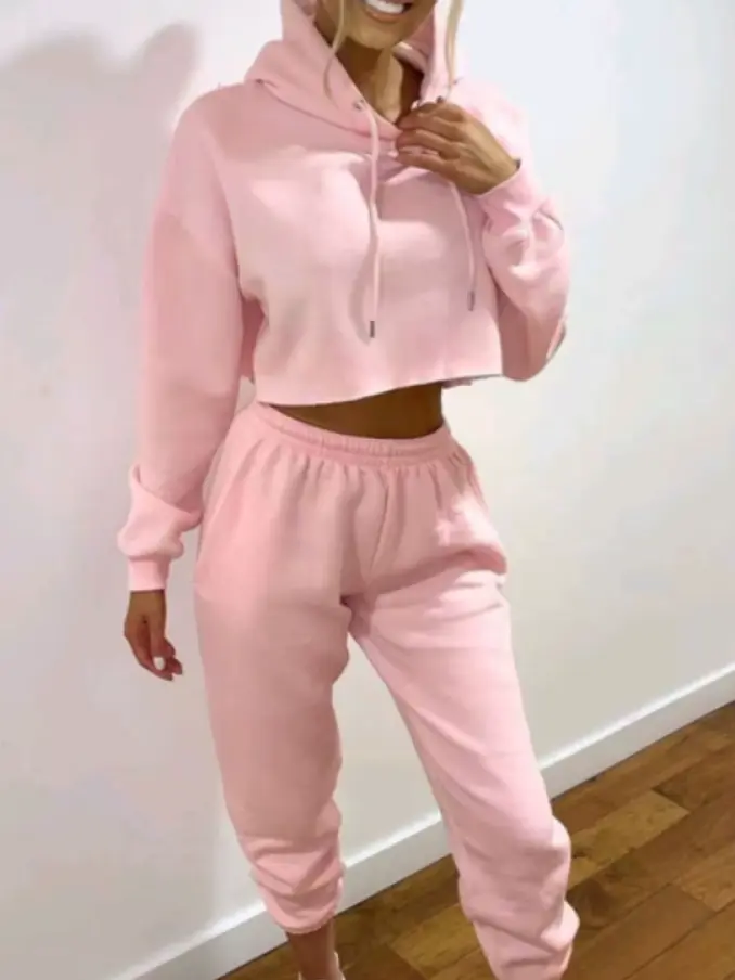 Women Two Pieces Set Elegant Solid Color Hoodies and Long Pants Sports Suit Autumn Winter Tracksuit Casual Home Suit
