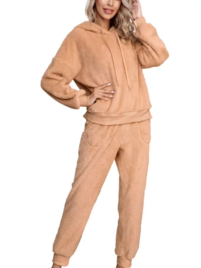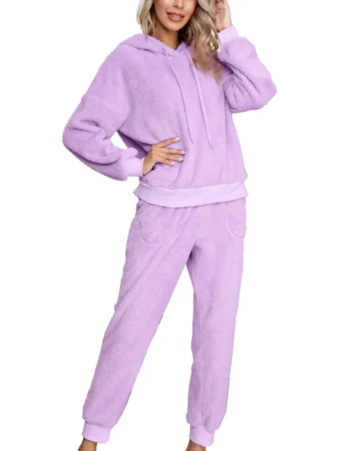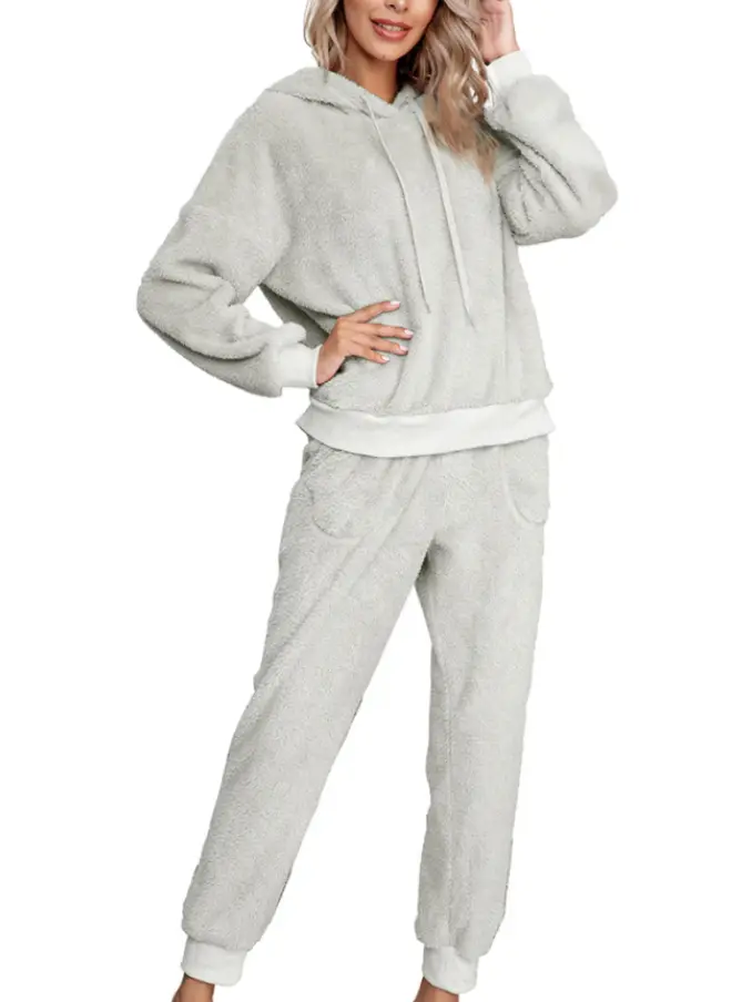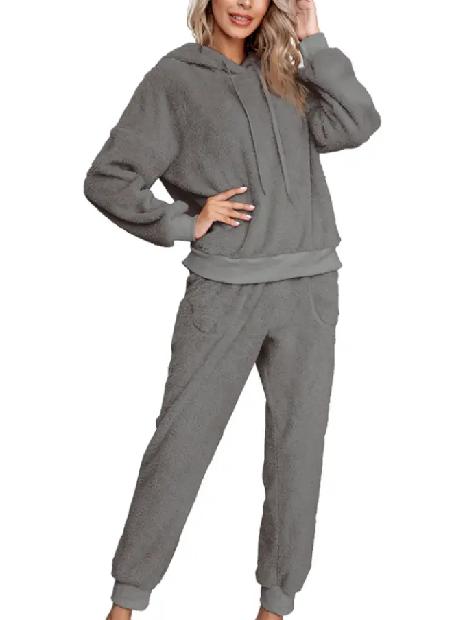 Hoodie Set Women Winter Warm Sexy Sleepwear Plush Homewear Clothes