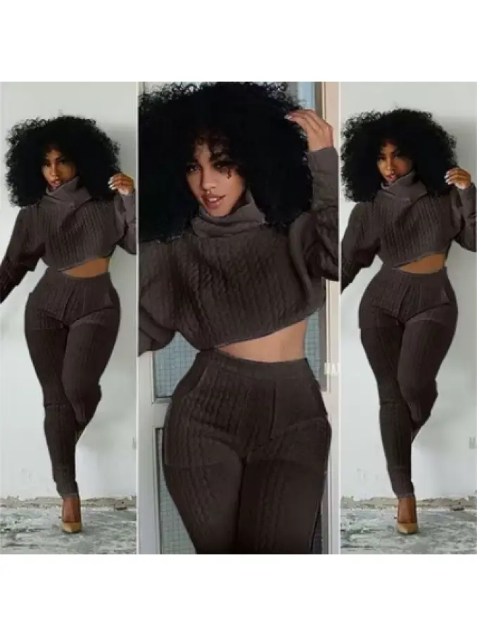 Women Two Pieces Set Knit Fitted Crop Tops Casual Suits White Women Set for Garment Shop