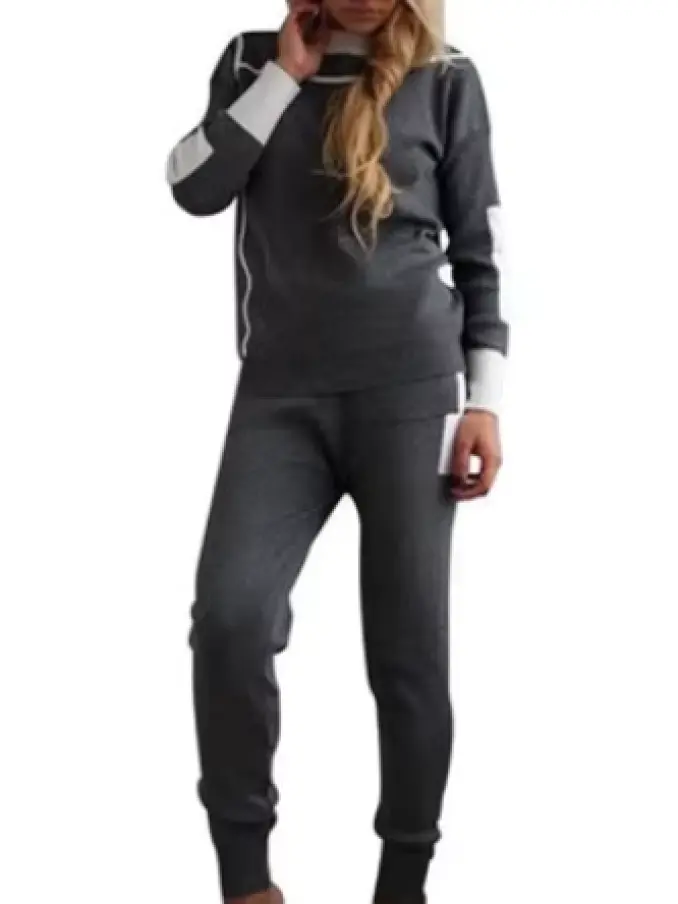 Woman Tracksuits Sweater and Slim Pants Knitted Suits Stripe Two Piece Set for Ladies