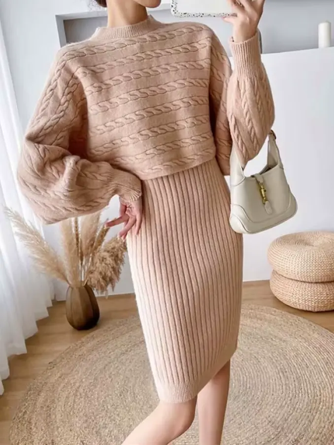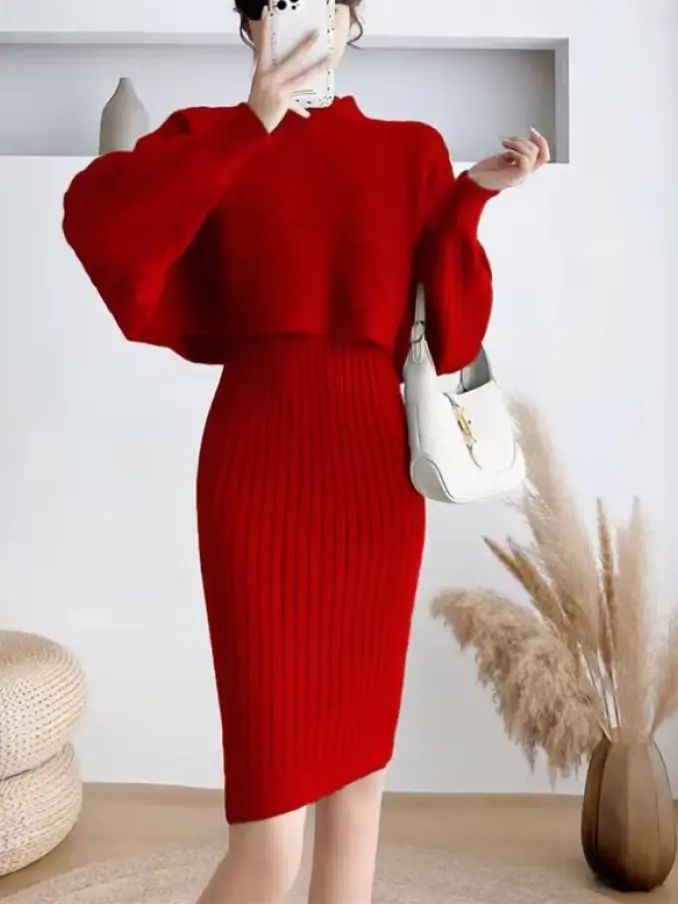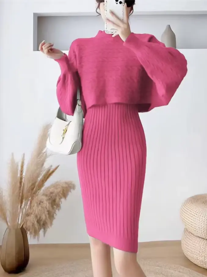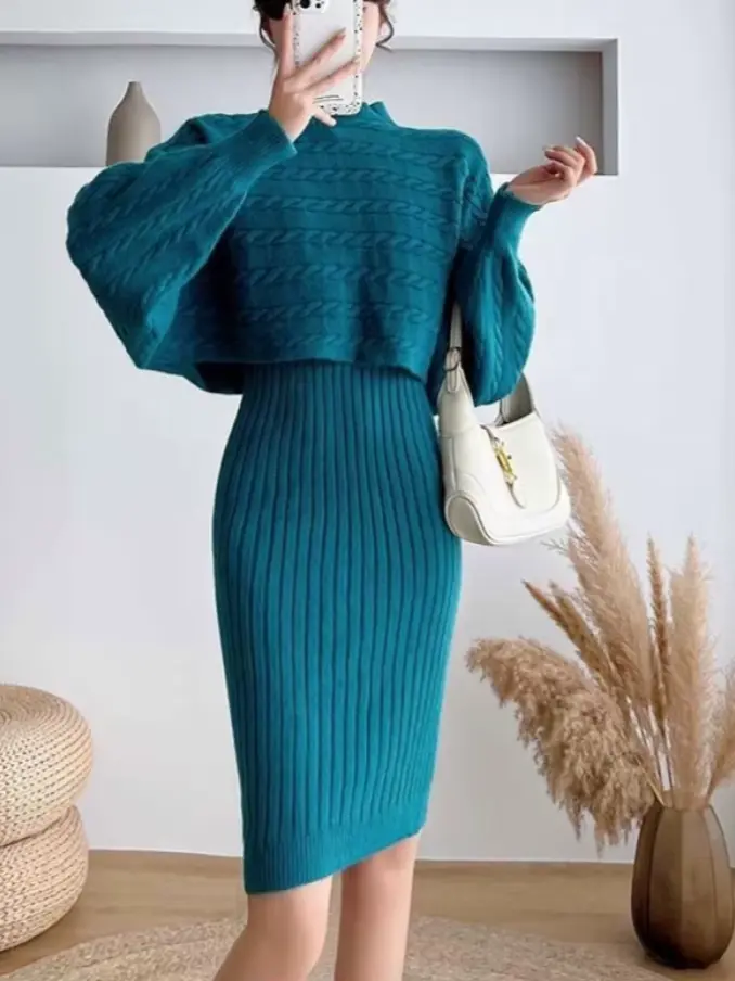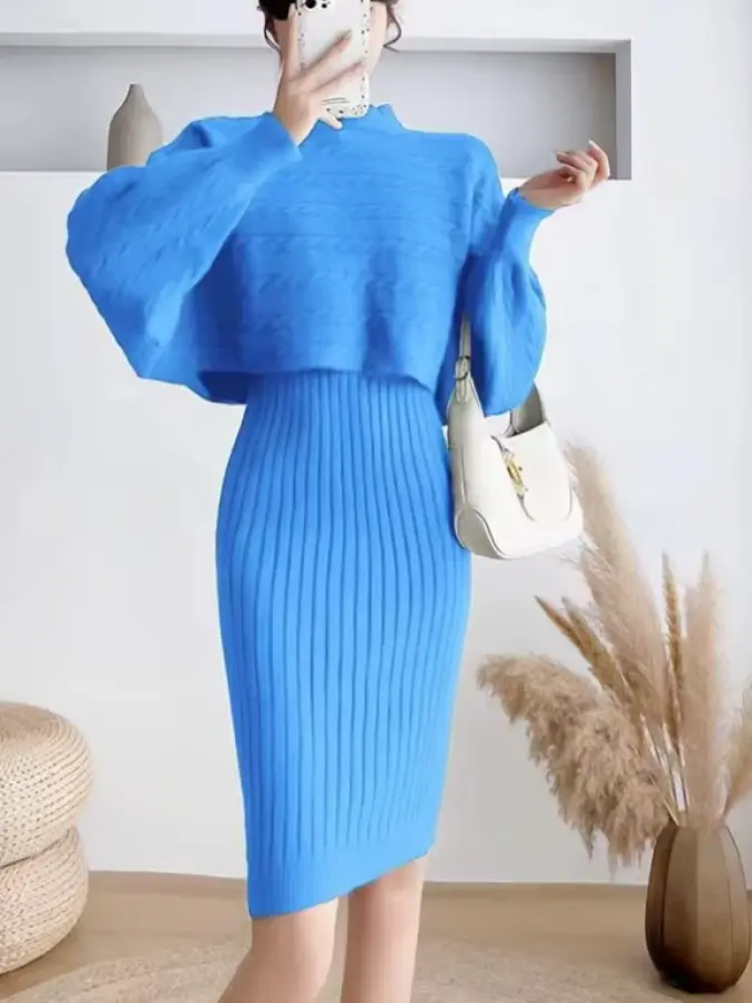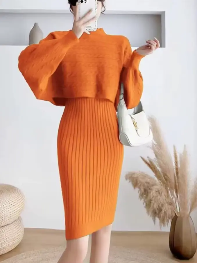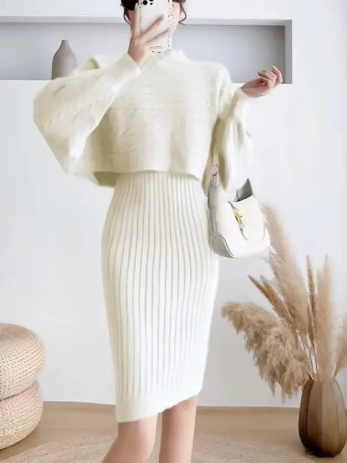 Knitted Sets Women Knitting Suit Women's Sweater Top and Dress Two Piece Set