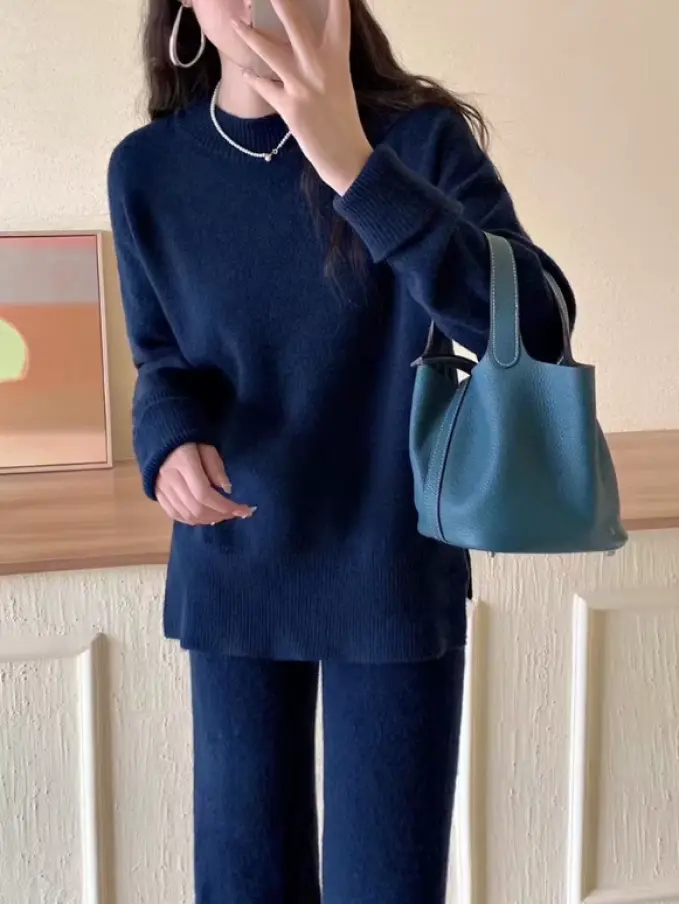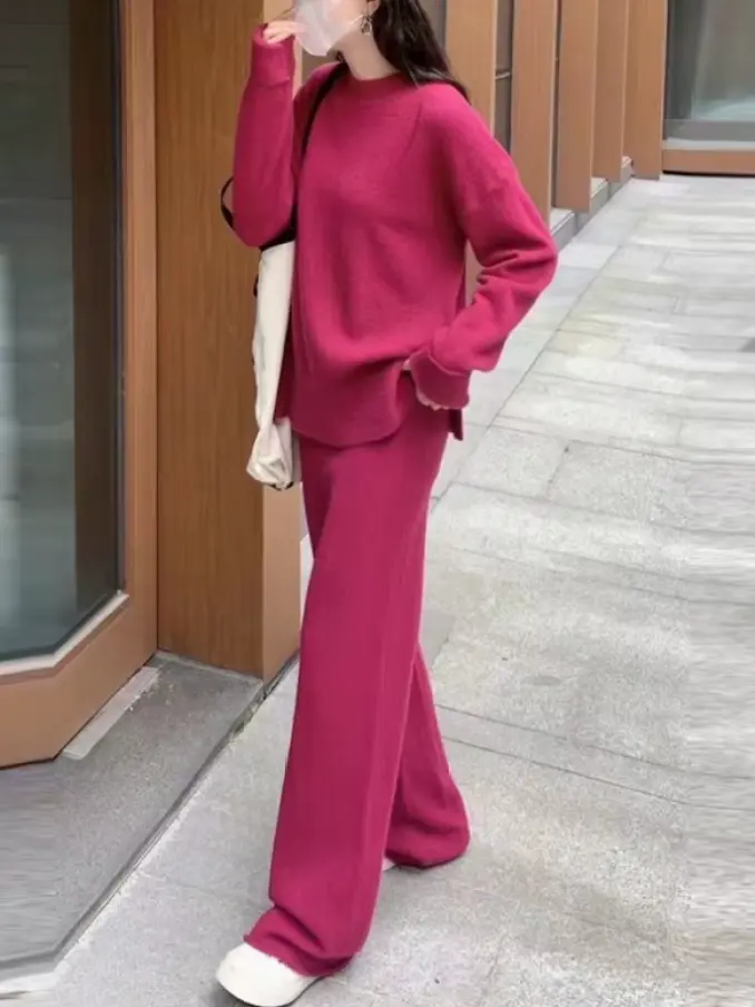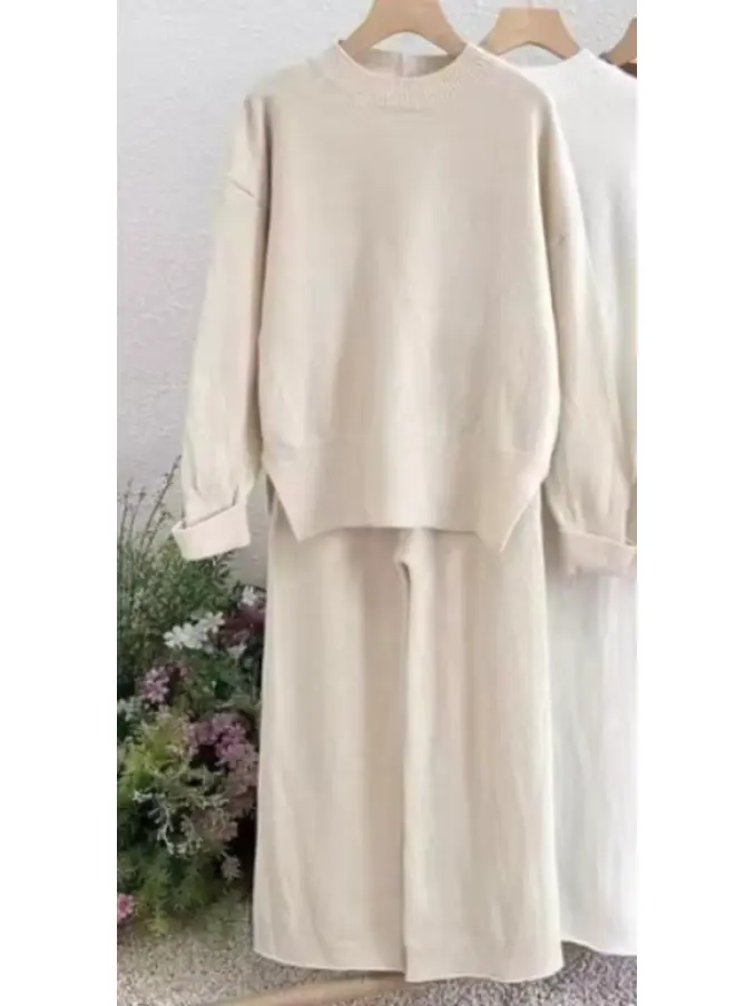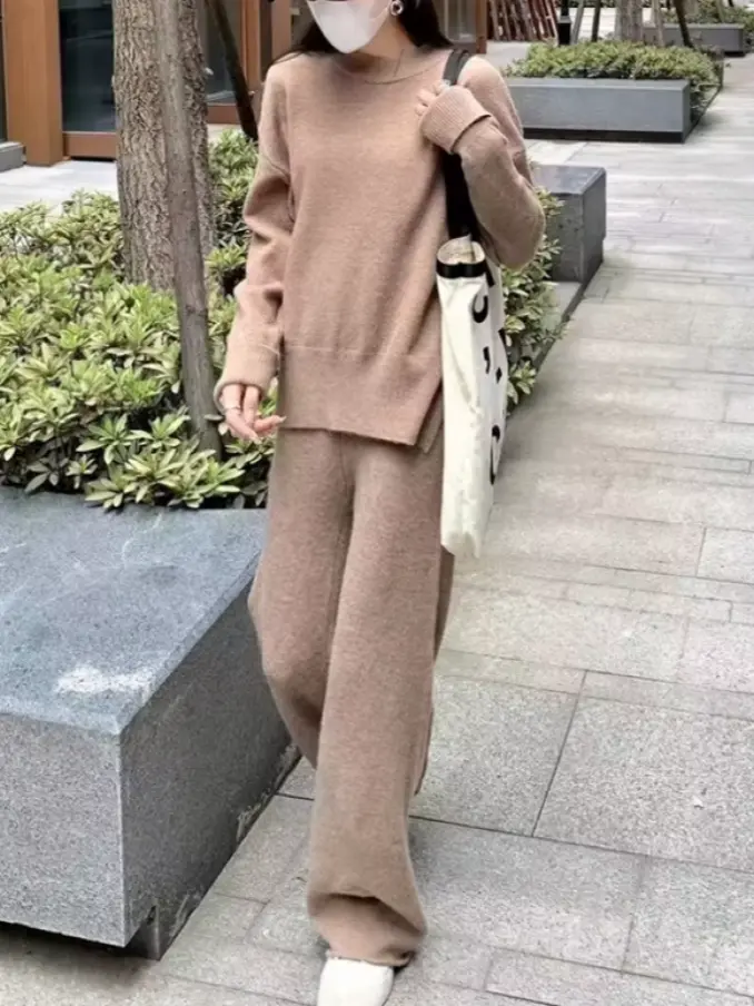 Casual Warm Sweater Two Pieces Knitted Sets Tracksuits Women Wide Leg Pants Suit Women's Knit Set