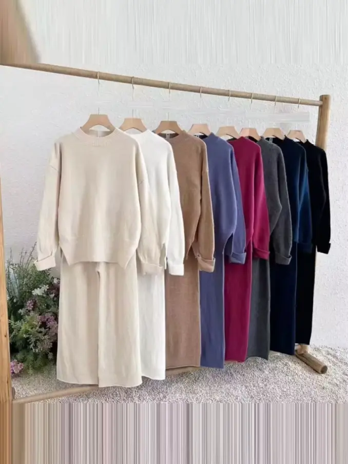 Women's Casual Warm Sweater Two Pieces Knitted Set