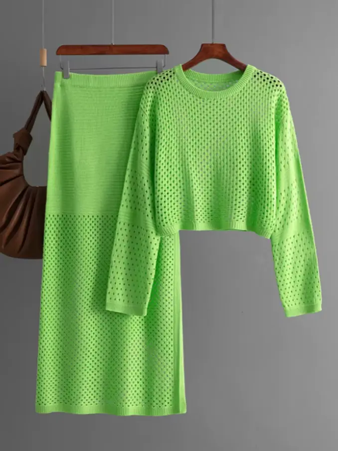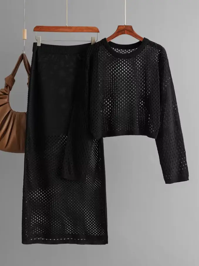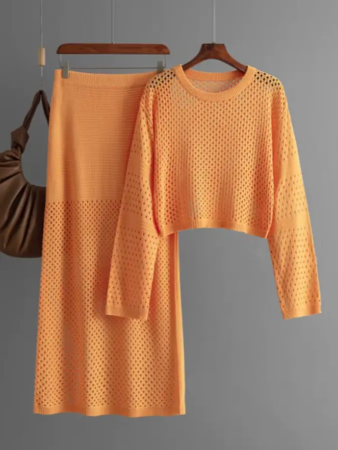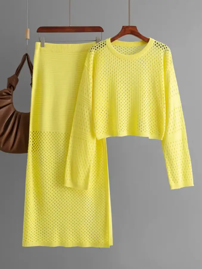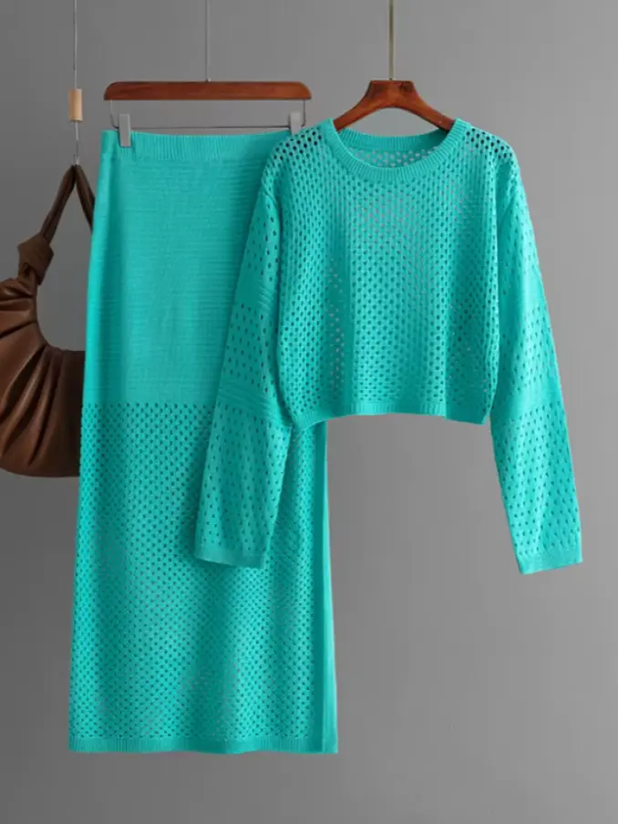 Women's Knit Set Long Half Skirt Fashion Beach Hollow Two Piece Knitted Skirt Sets