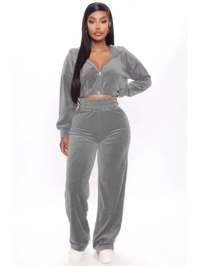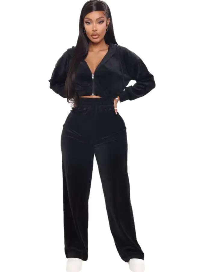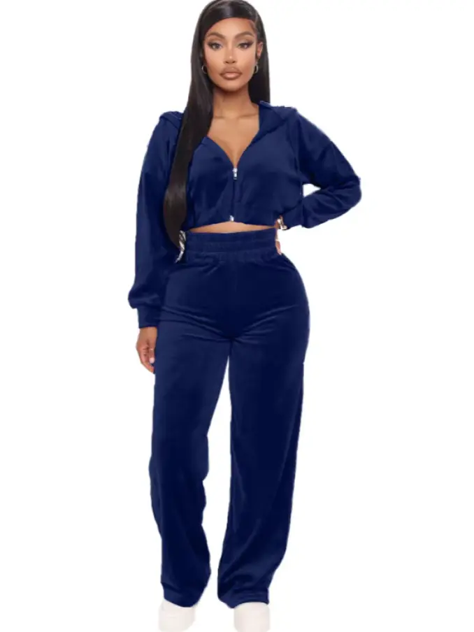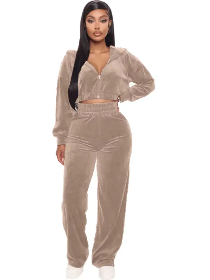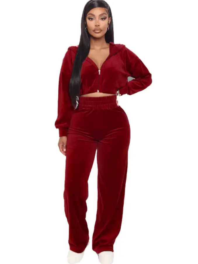 Women Hoodie Cropp Top Jackets and Straight Leg Pants Sets Velvet Tracksuits Lounge Wear Two Piece Women Sets