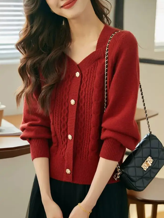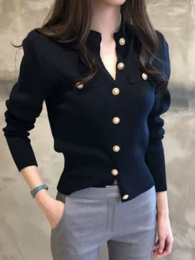 Breasted Slim Chic Ladies Tops Cardigan Sweater