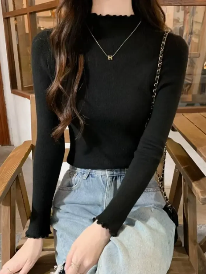 Women Long Sleeve Pullover Basic Top Knitted Swe...