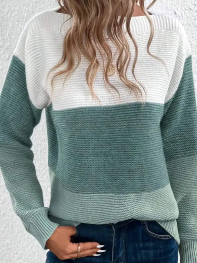 Lady's Loose Color Block Drop Shoulder Knit Swea...