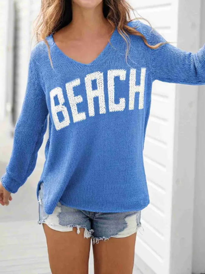 v Neck Pullover Knit Sweater for Women