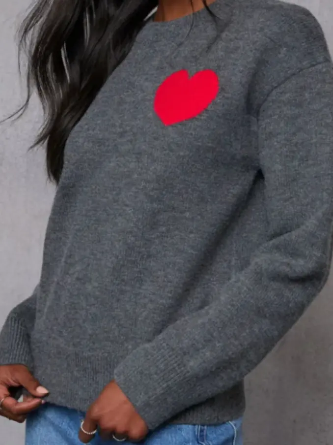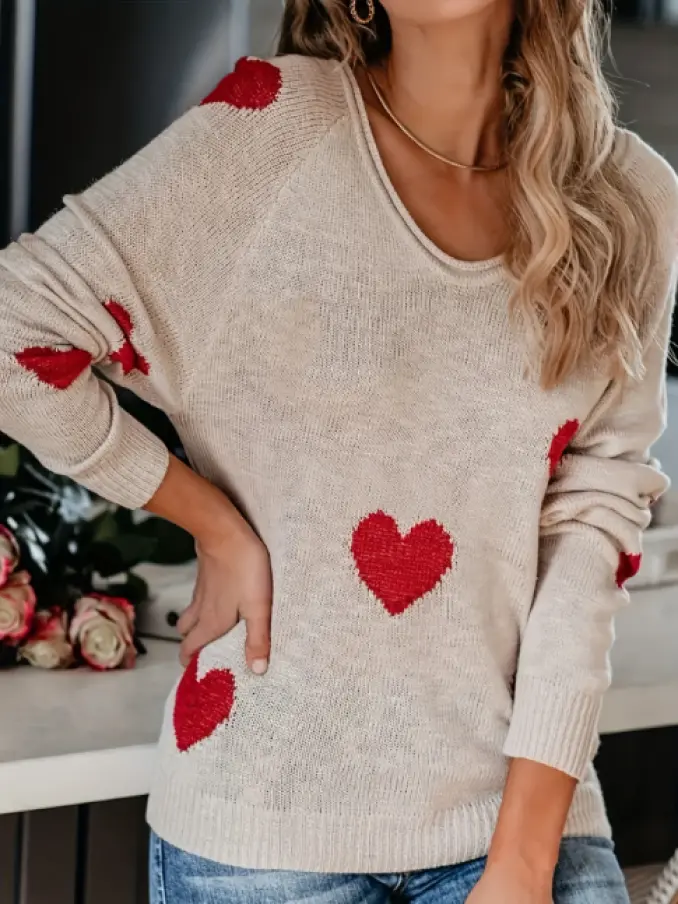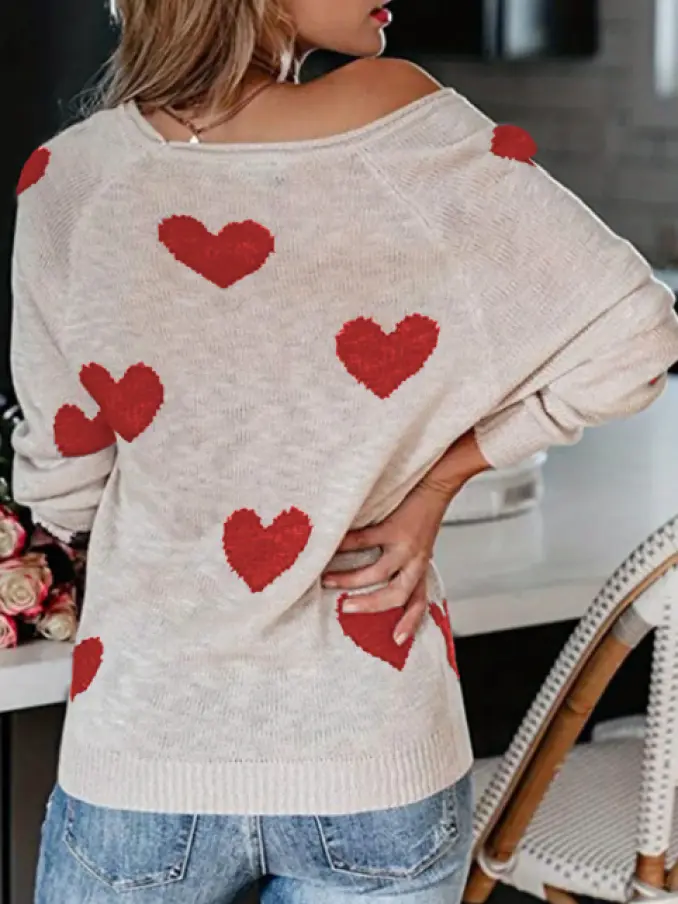 Ladies Love Heart Print Knitted Sweater