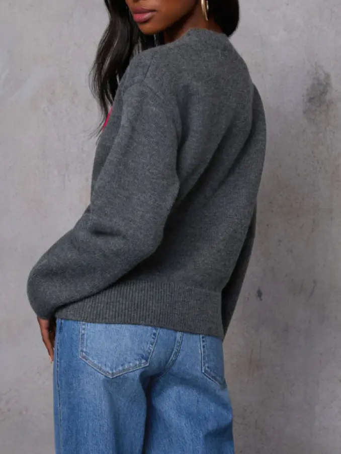 Love Heart Embroidery Knitted Sweater