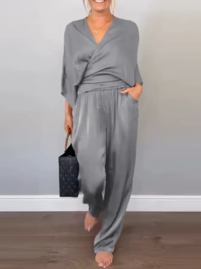Chic V-neck Tops Women Two Piece Set
