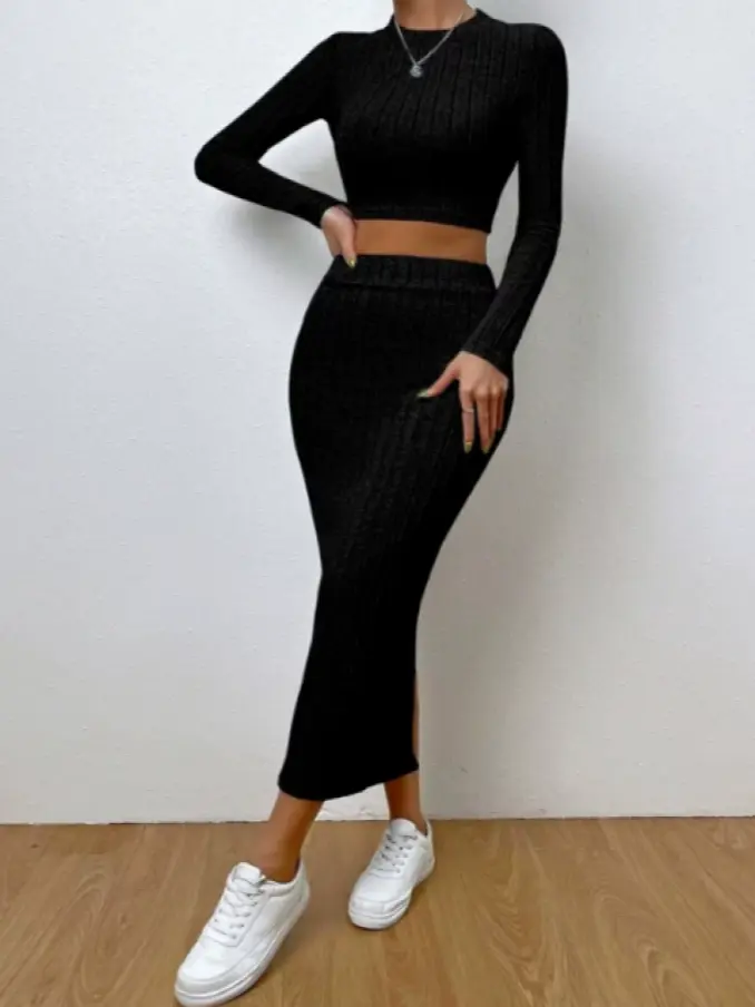 2 Piece Knitted Outfits Women Top and Skirt Set